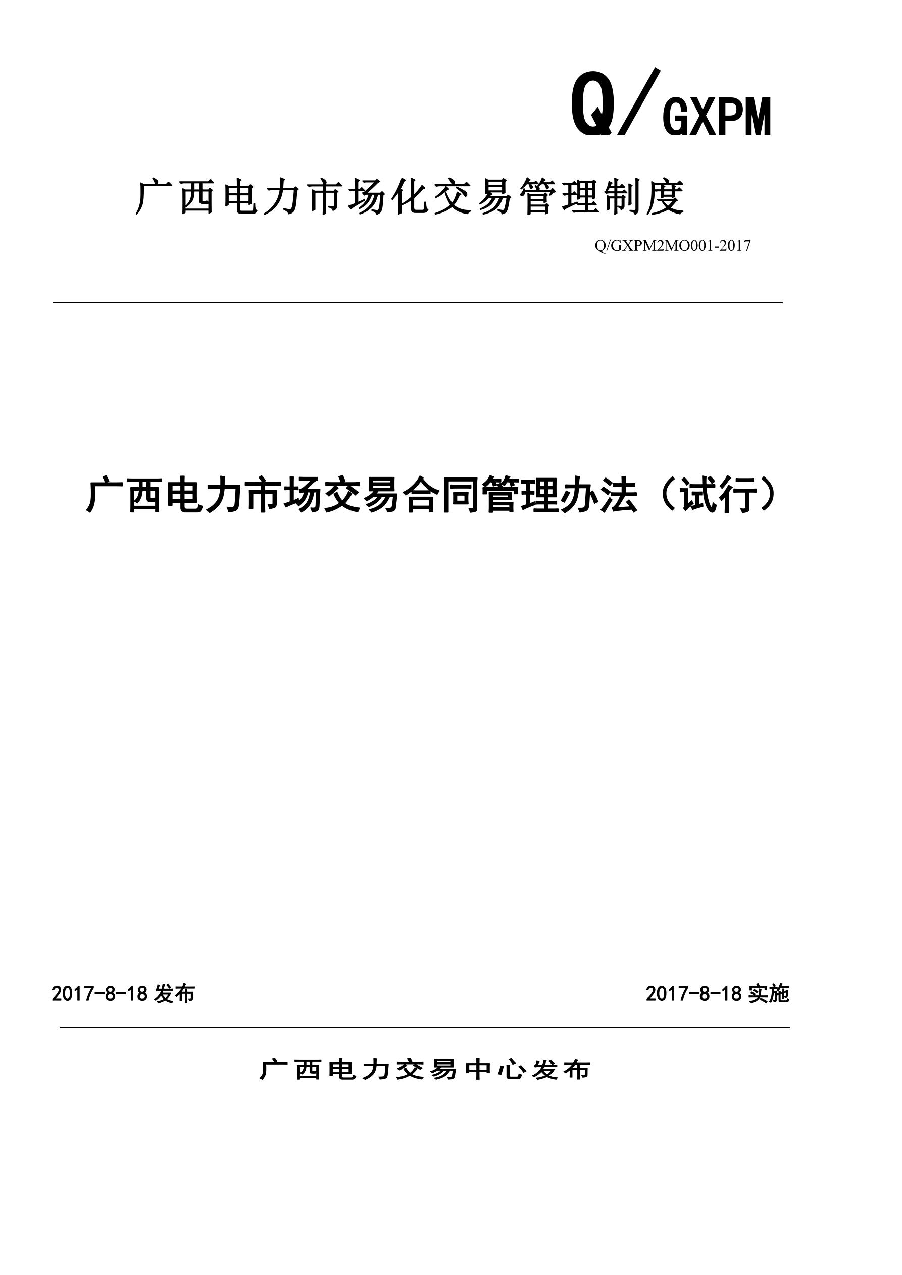 關(guān)于發(fā)布《廣西電力市場交易合同管理辦法(試行)》的通知