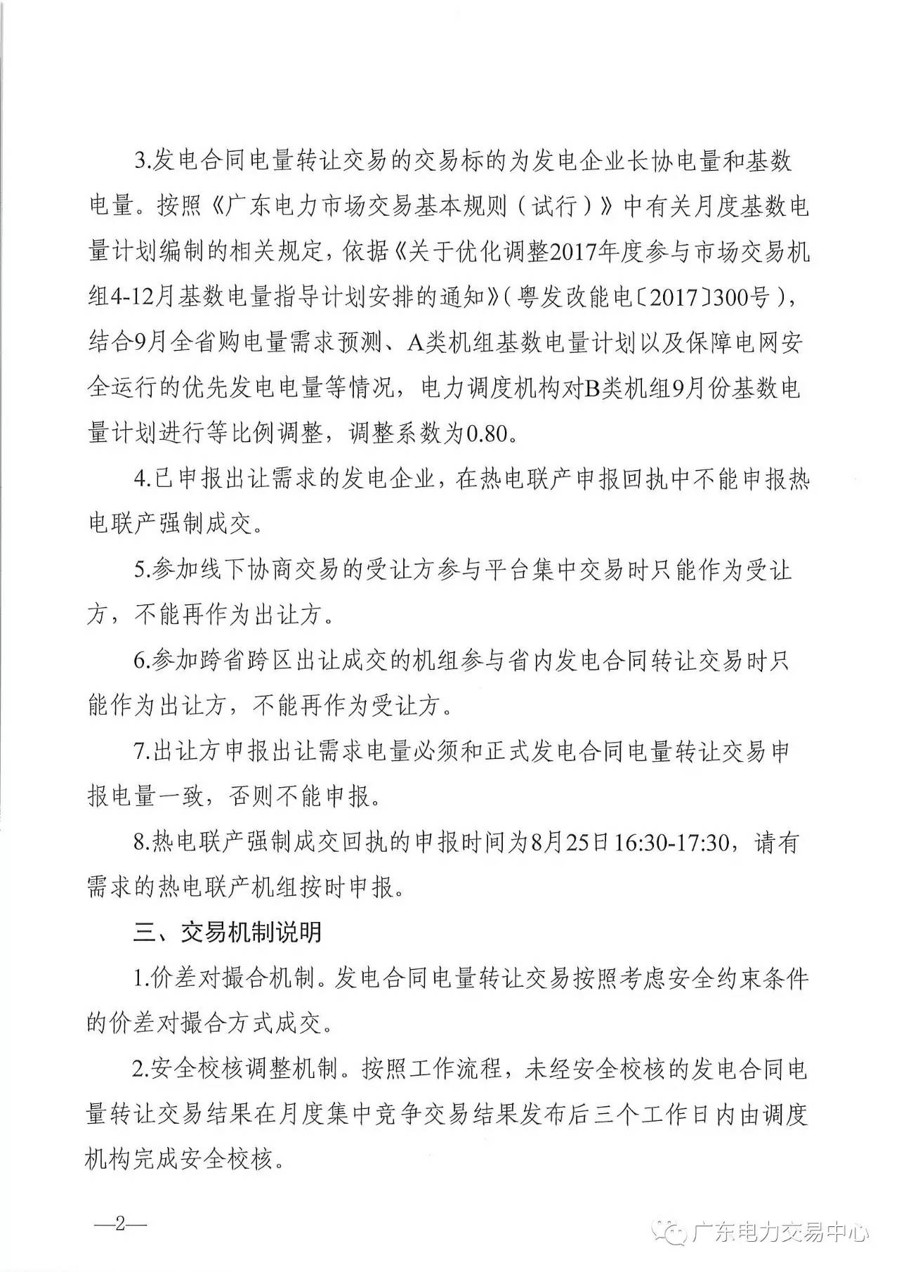 關(guān)于開展2017年9月份發(fā)電合同電量轉(zhuǎn)讓交易的通知