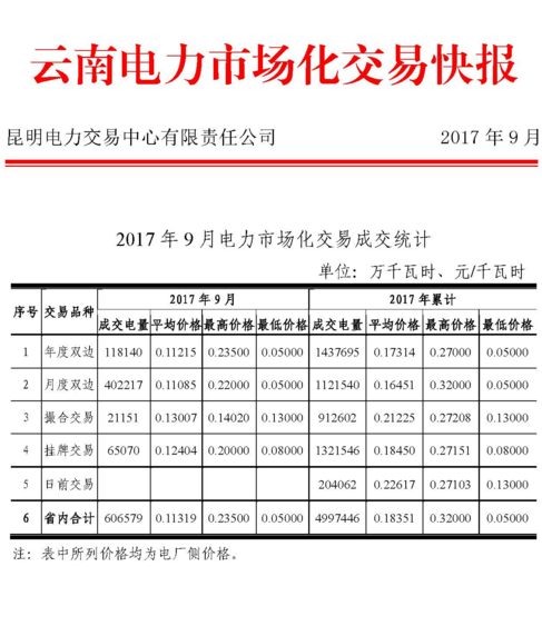 云南9月電力市場(chǎng)化交易快報(bào) 省內(nèi)成交電量606579萬(wàn)千瓦時(shí)