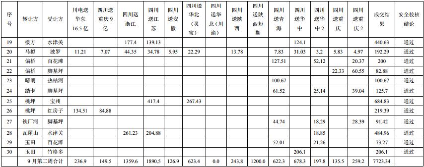 附件:四川9月第二周市場化電量轉(zhuǎn)讓結(jié)果