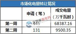 其中省內(nèi)市場化轉(zhuǎn)讓30筆,實際成交30筆,成交電量1777.01萬千瓦時,比第一周66筆,減少5395.85萬千瓦時。
