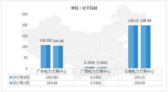 數(shù)據(jù)顯示,八月份,廣東、廣西、云南、貴州四大省級電力交易中心的市場交易電量普遍增長,其中廣東市場交易電量108.382億千瓦時,同比增長3.53%,其中集中競價200.56億千瓦時,雙邊協(xié)商827.17億千瓦時;廣西交易規(guī)模6.2456億千瓦時,成交電量5.8361億千瓦時,同比增長15.87%;云南市場總需求折算到電廠上網(wǎng)側(cè)預(yù)計為199.15億千瓦時,同比增加8.06%。