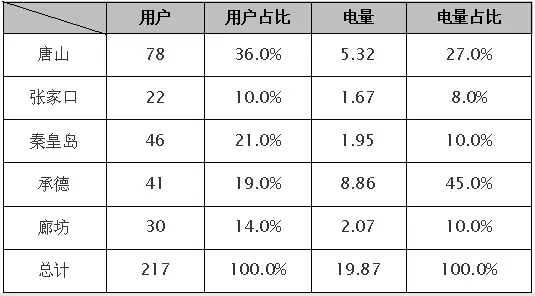冀北地區(qū)準入電力用戶227家,本次交易217家參與,10家未參與。參與交易的343個用電單元地區(qū)分布及電壓等級情況如下: