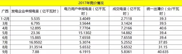 接下來就是廣西,廣西開啟了長協(xié)和月競,17年長協(xié)簽約總量為250.26億千瓦時,到9月月競的累計成交電量為120.65億千瓦時。