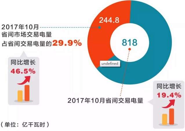 10月,省間交易電量完成818億千瓦時(shí),同比增長19.4%。省間市場(chǎng)交易電量完成244.8億千瓦時(shí),同比增長46.5%,占省間交易電量的29.9%,其中,省間電力直接交易電量96.4億千瓦時(shí)。