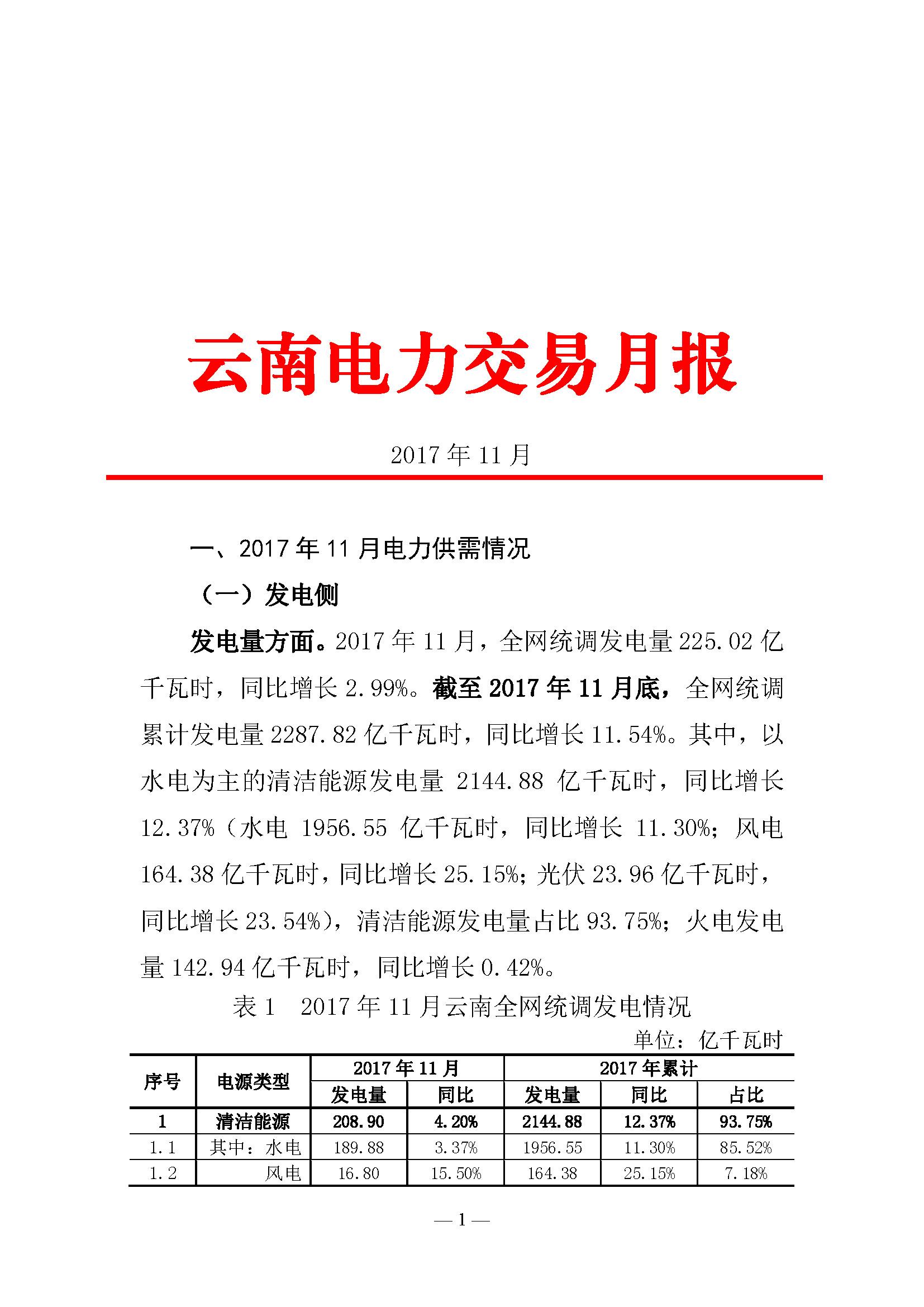昆明電力交易中心日前發(fā)布了云南電力交易月報(2017年11月)。11月,云南電網(wǎng)公司完成售電量196 56億千瓦時,同比減少4 16%,其中省內(nèi)售電量110 42億千瓦時,同比增長8 16%。截至2017年11月底,云南電網(wǎng)公司累計