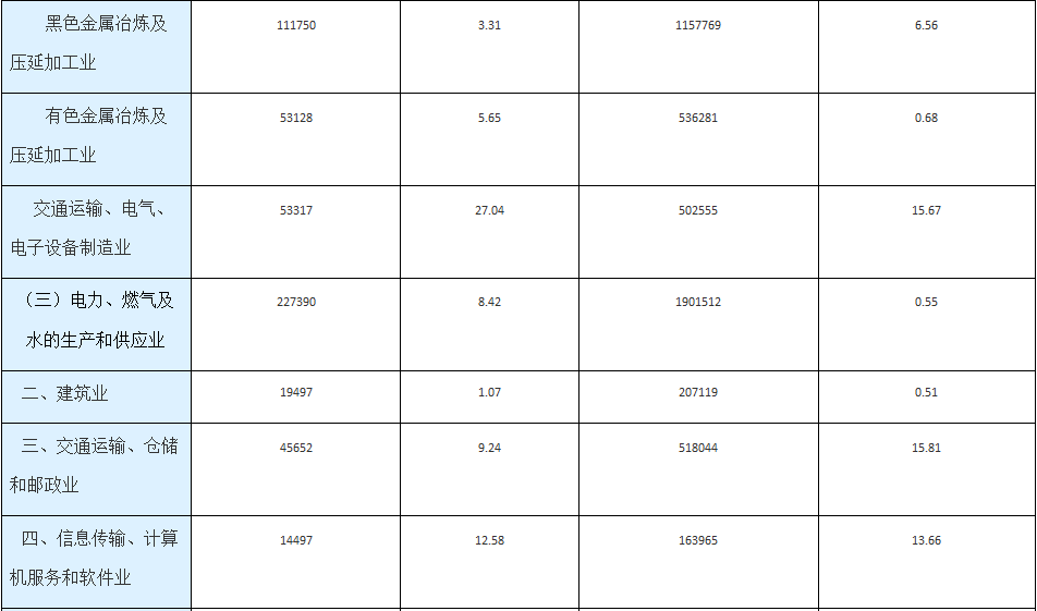 各行業(yè)用電量當月及累計增長情況具體見下表: