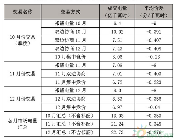 通過雙邊協(xié)商交易和集中競價交易,10-12 月累計成交市場電量 57.05 億千瓦時,平均價差-0.32 分/千瓦時,電廠側(cè)讓利約 1817 萬元。其中雙邊協(xié)商交易成交 40.30 億千瓦時,平均