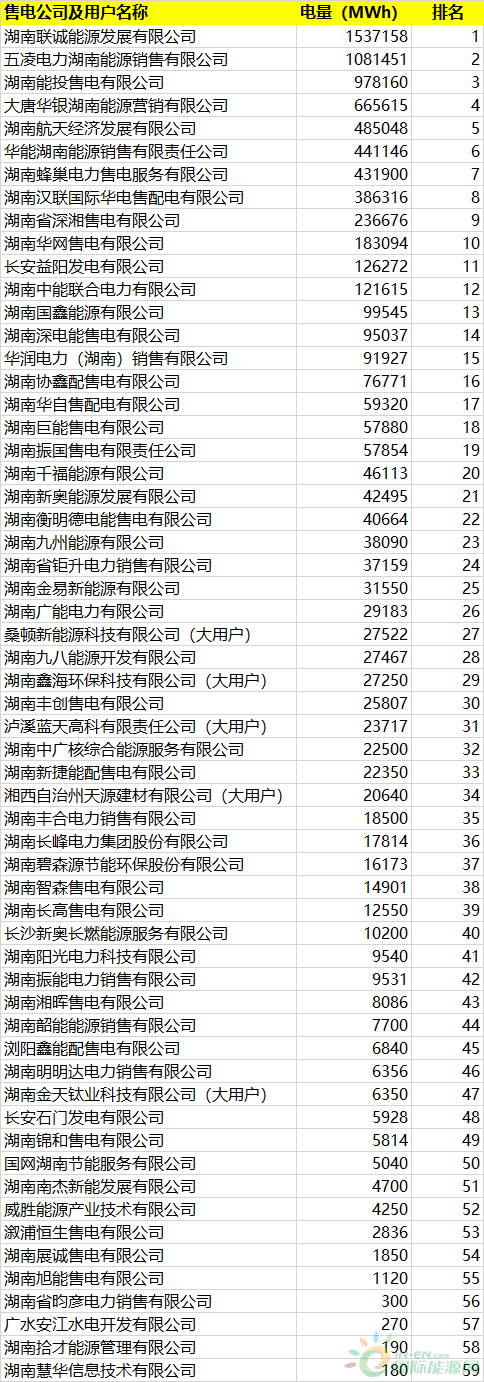 表 2 四季度售電公司及用戶成交電量排名