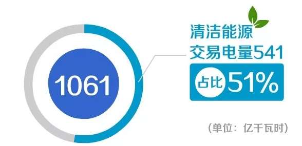 2017年12月,北京電力交易中心在交易平臺(tái)組織開(kāi)展市場(chǎng)化交易52筆,規(guī)模合計(jì)1061億千瓦時(shí),其中,清潔能源交易電量541億千瓦時(shí),占比51%。