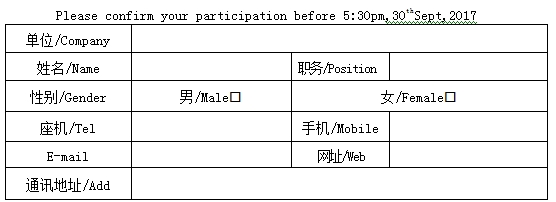 1、請務(wù)必于2017年10月17日之前將“回執(zhí)表”發(fā)送電子郵件至150103642@QQ.com