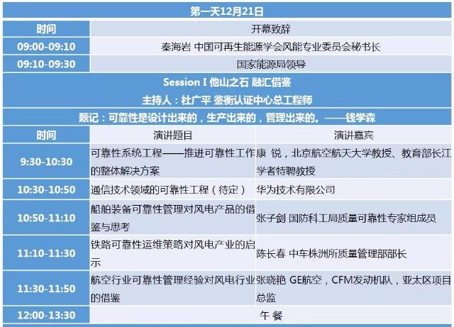 2017風(fēng)電設(shè)備質(zhì)量與可靠性論壇會議日程