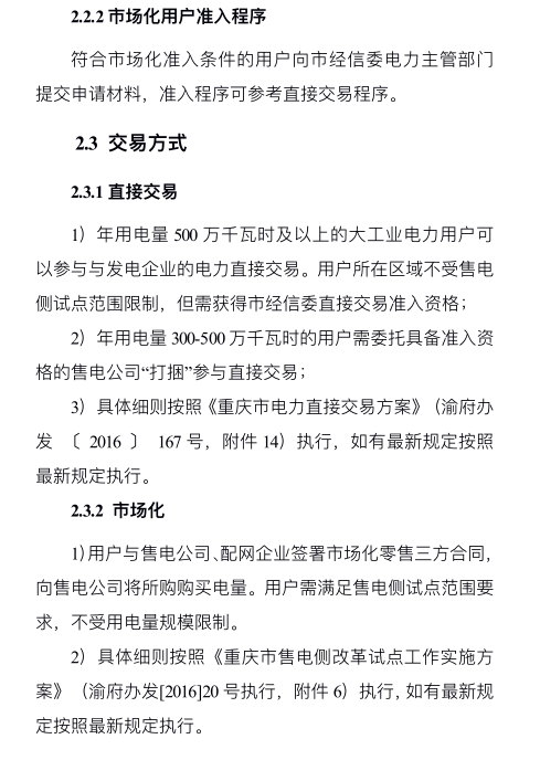 重慶市能源局6月5日發(fā)布關(guān)于《重慶市售電側(cè)市場指引手冊》公開征求意見稿,重慶或稱為對電網(wǎng)公司限制最嚴格地方政府。主要亮點如下:1 限制電網(wǎng)企業(yè)售電公司獲得配網(wǎng)經(jīng)營權(quán)國網(wǎng)市電力公司、三峽水利電力、聚龍電