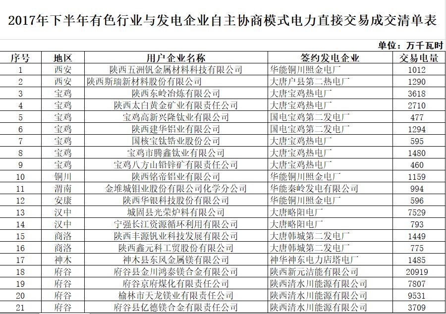 附件3:2017年下半年有色行業(yè)與發(fā)電企業(yè)自主協(xié)商模式電力直接交易成交清單表