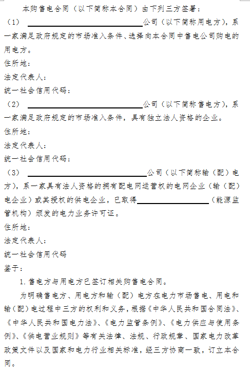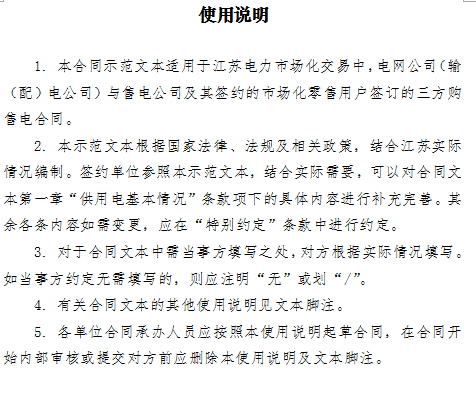 江蘇發(fā)布購(gòu)售電合同、三方合同示范文本