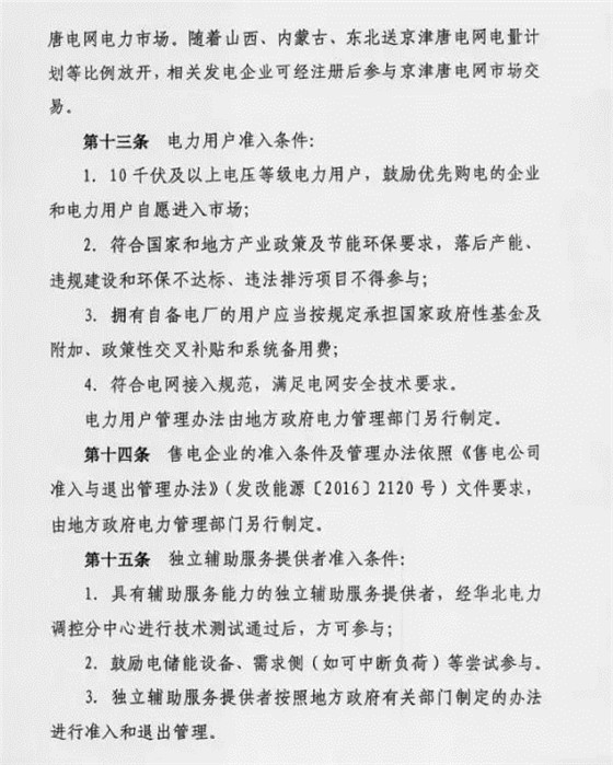 國家能源局發(fā)布了《京津唐電網(wǎng)電力中長期交易暫行規(guī)則》