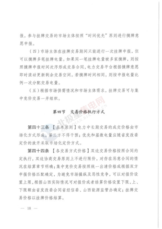 山西能源監(jiān)管辦日前印發(fā)了《山西省電力中長期交易實(shí)施細(xì)則(暫行)》?!都?xì)則》在此前印發(fā)的《山西省電力中長期交易規(guī)則(暫行)》基礎(chǔ)上,進(jìn)一步進(jìn)行了細(xì)化明確。實(shí)施細(xì)則共3篇9章186條,第一篇為交易準(zhǔn)備,從第1章