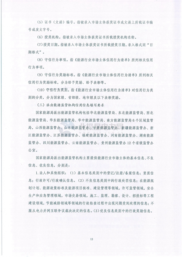 國(guó)家能源局綜合司關(guān)于印發(fā)《能源行業(yè)市場(chǎng)主體信用數(shù)據(jù)清單(2018版)的通知》