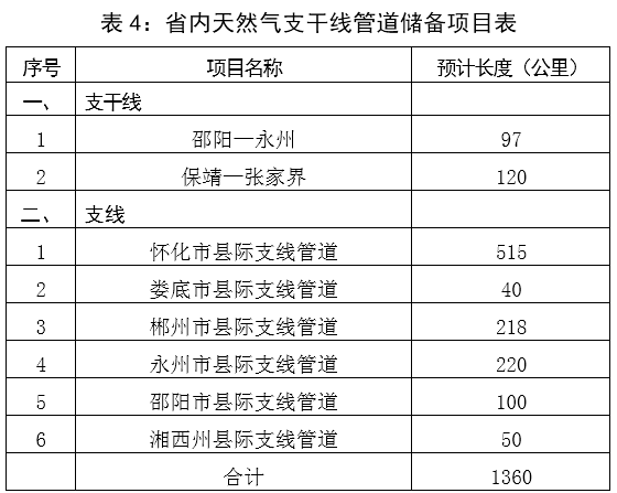 表4:省內(nèi)天然氣支干線管道儲備項目表