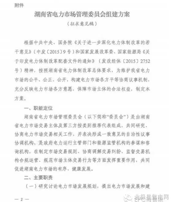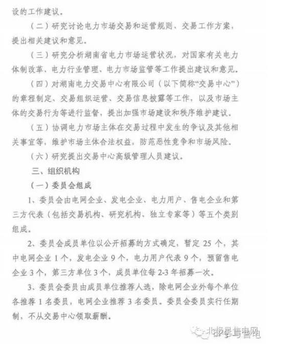 湖南省電力市場管理委員會組建方案(征求意見稿)