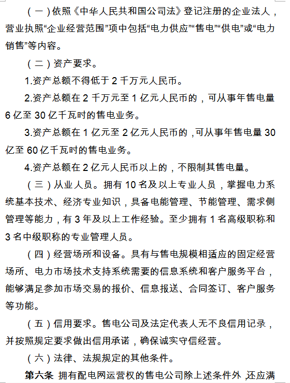 (二)同一配電區(qū)域內(nèi)可以有多個(gè)售電公司,同一售電公司可在區(qū)內(nèi)多個(gè)配電區(qū)域內(nèi)售電。