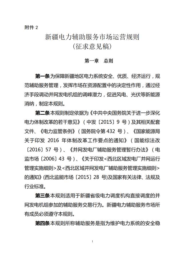 《新疆電力輔助服務(wù)市場(chǎng)運(yùn)營(yíng)規(guī)則》(征求意見(jiàn)稿)印發(fā)