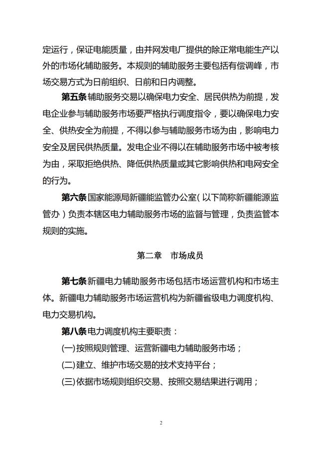 國(guó)家能源局新疆監(jiān)管辦日前發(fā)布了關(guān)于征求《新疆電力輔助服務(wù)市場(chǎng)運(yùn)營(yíng)規(guī)則》(征求意見(jiàn)稿),規(guī)則從參與的主體、交易品種和類(lèi)型、市場(chǎng)組織和競(jìng)價(jià)、交易結(jié)果執(zhí)行、計(jì)量和結(jié)算信息披露、市場(chǎng)監(jiān)管和干預(yù)等六個(gè)方面進(jìn)