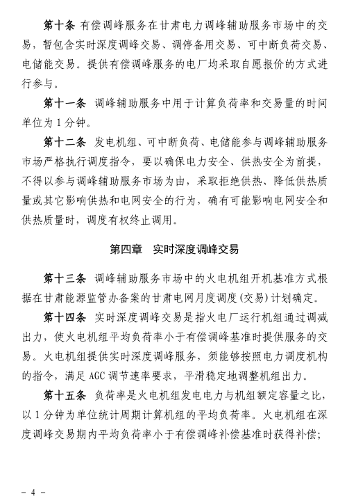 《甘肅省電力輔助服務(wù)市場運(yùn)營規(guī)則(試行)》 單機(jī)容量100MW及以上的燃煤、燃?xì)獾然痣姍C(jī)組參與調(diào)峰