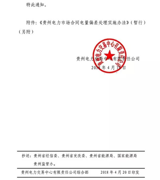 貴州電力市場合同電量偏差處理實施辦法(暫行)發(fā)布:超出偏差范圍按少用電量合同加權(quán)價5%支付費用