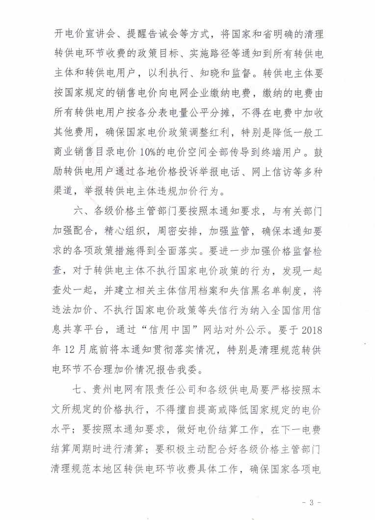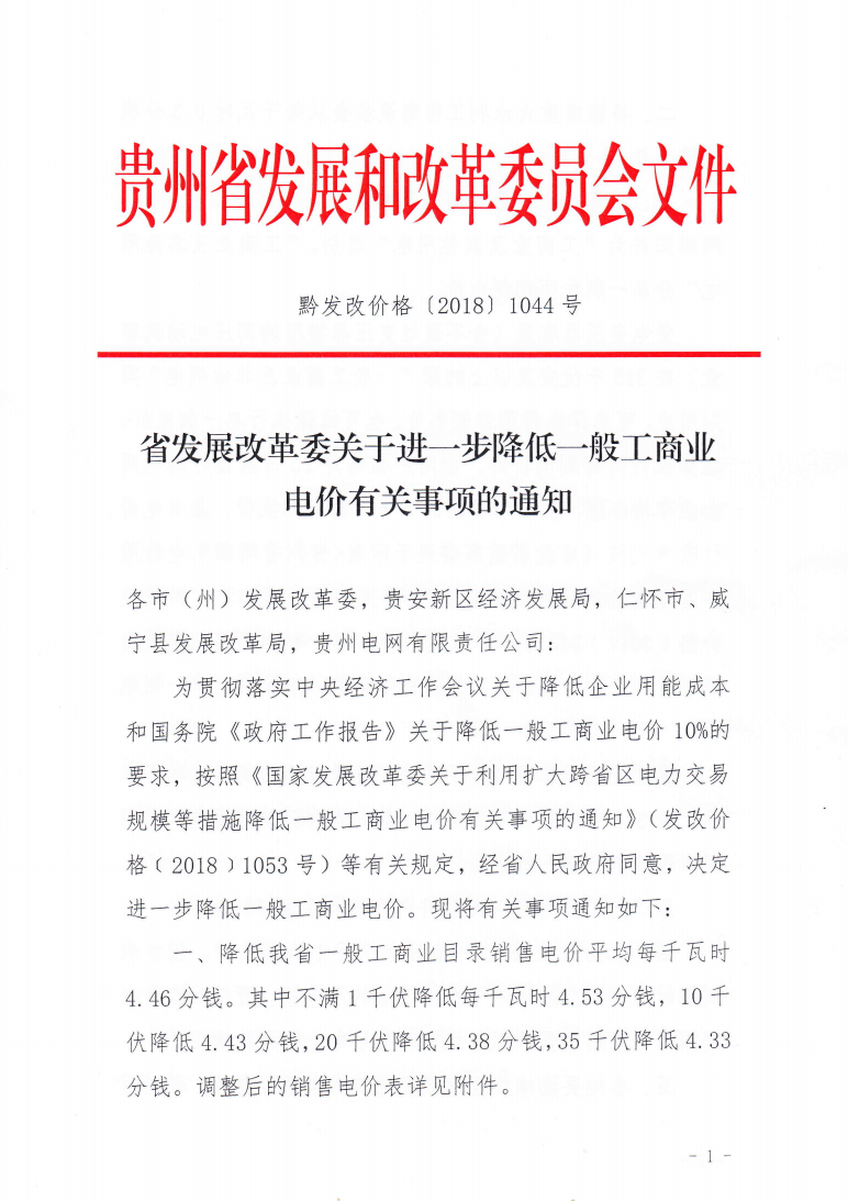 貴州省發(fā)展改革委關(guān)于進(jìn)一步降低一般工商業(yè)電價有關(guān)事項(xiàng)的通知