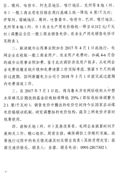 新疆自治區(qū)發(fā)改委日前發(fā)布了《關(guān)于合理調(diào)我區(qū)電價(jià)結(jié)構(gòu)有關(guān)事宜的通知》,通知中稱,自2017年7月1日起,伊犁州、阿勒泰地區(qū)、塔城地區(qū)、博州、哈密市、阿克蘇地區(qū)、喀什地區(qū)、克州等8地(州、市)一般工商業(yè)用電價(jià)格在現(xiàn)行基礎(chǔ)上統(tǒng)一降低4厘/千瓦時(shí);伊犁州、塔城地區(qū)、博州、吐魯番市、哈密市、巴州、喀什地區(qū)、克州等8地(州、市)農(nóng)業(yè)生產(chǎn)用電價(jià)格統(tǒng)一降至0.312元/千瓦時(shí)。