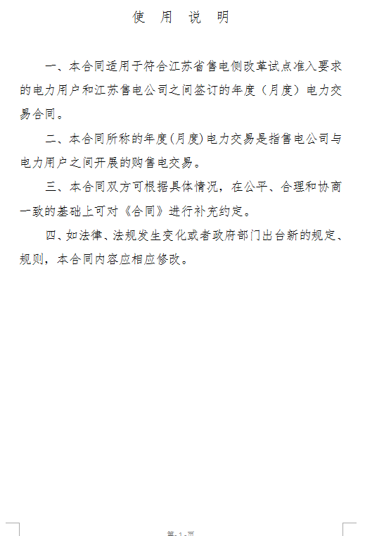 江蘇能源監(jiān)管辦印發(fā)兩個電力市場化交易合同示范文本
