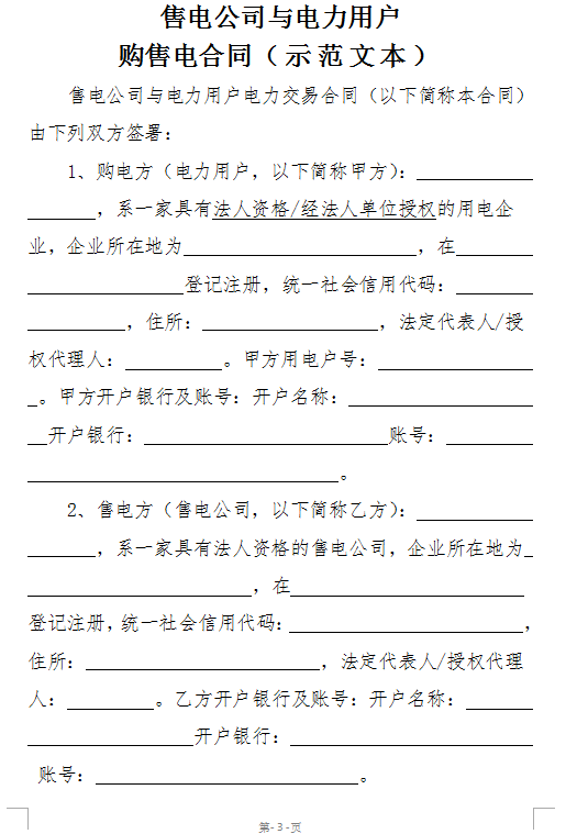 本網(wǎng)獲悉,國家能源局江蘇監(jiān)管辦日前發(fā)布了《售電公司與電力用戶購售電合同(示范文本)》《江蘇電網(wǎng)公司(輸配電公司)、售電公司、電力市場化零售用戶三方購售電合同(示范文本)》。各有關(guān)單位要在開展電力用戶直接交易工作時參照使用。