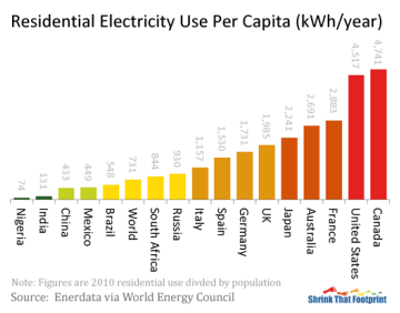 如果算人均用電量,那么我們差距更遠:只有美國、加拿大的十分之一。