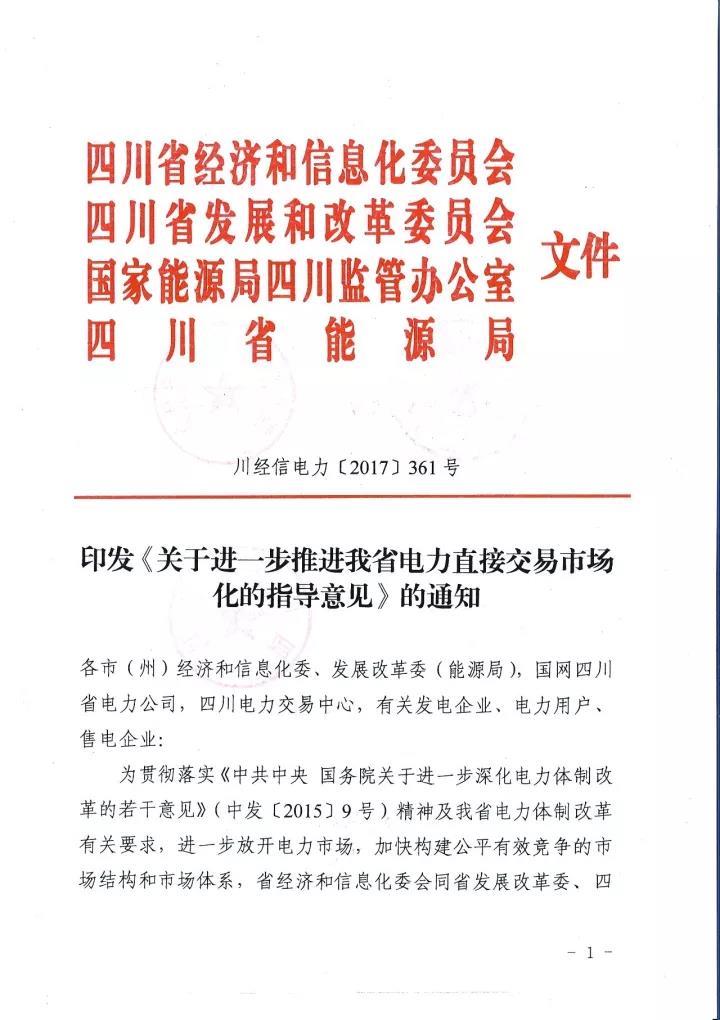 四川進(jìn)一步推進(jìn)電力直接交易市場(chǎng)化指導(dǎo)意見發(fā)布:全面放開售電公司參與電力市場(chǎng)