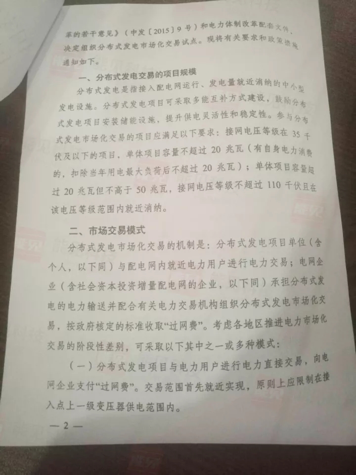 重磅丨《關(guān)于開展分布式發(fā)電市場(chǎng)化交易試點(diǎn)的通知》印發(fā)