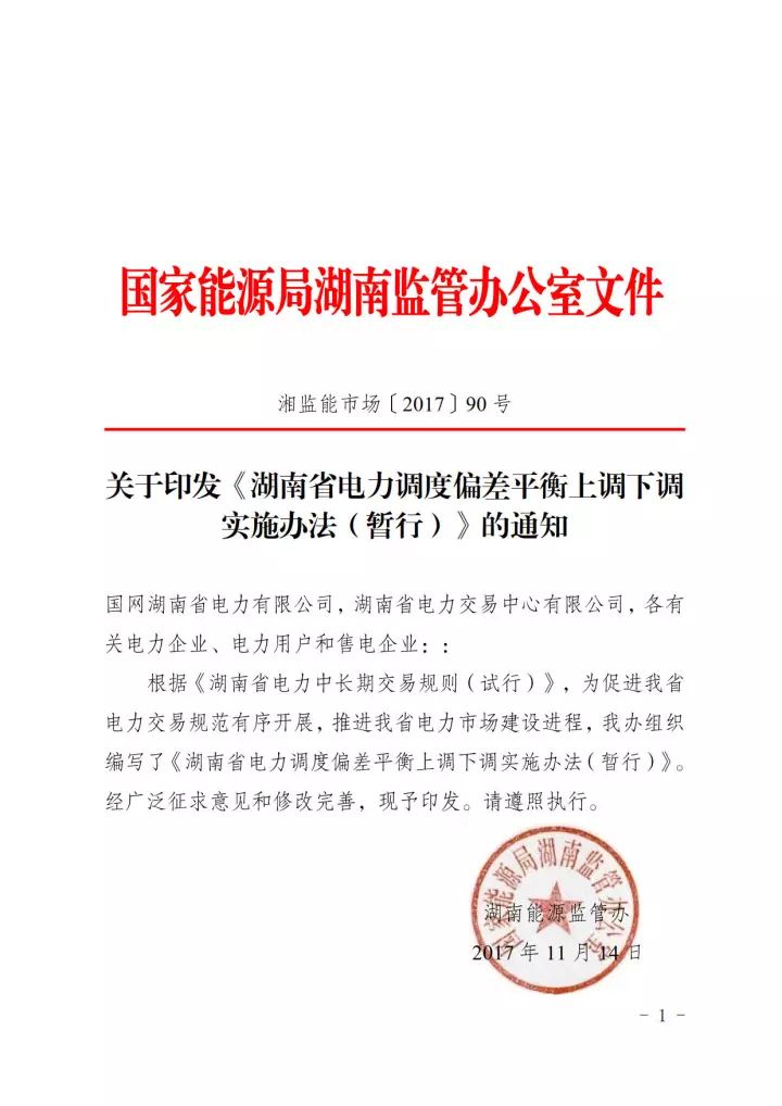 《湖南省電力調(diào)度偏差平衡上調(diào)下調(diào)實(shí)施辦法(暫行)的通知》