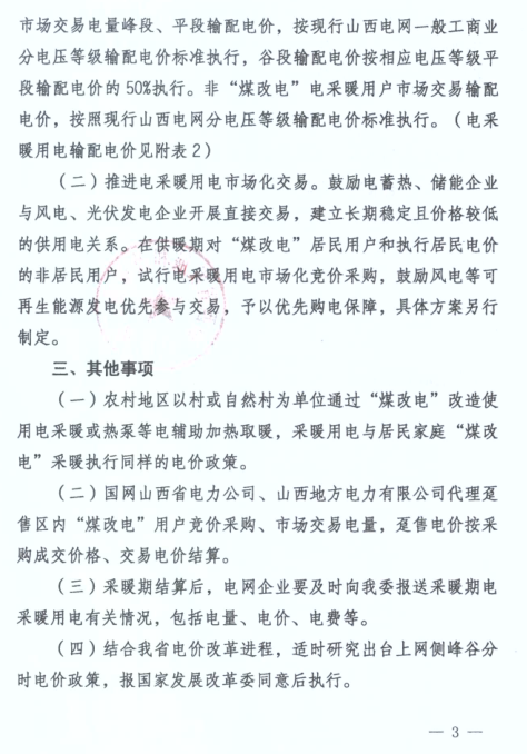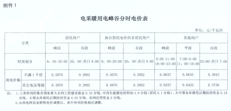 山西省清潔采暖用電價(jià)格有關(guān)事項(xiàng)發(fā)布 谷段輸配電價(jià)標(biāo)準(zhǔn)按銷售電價(jià)居民購(gòu)銷差價(jià)50%執(zhí)行