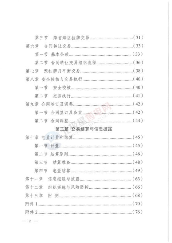 實(shí)施細(xì)則共3篇9章186條,第一篇為“交易準(zhǔn)備”,從第1章到第2章,涵蓋了總則、市場(chǎng)注冊(cè);第二篇為“交易實(shí)施”,從第3章到第9章,按交易品種逐一明確了交易組織的原則、流程、時(shí)間安排等內(nèi)容,并給出了安全校核、合同簽訂的操作步驟;第三篇為“交易結(jié)算與信息披露”,從第10章到第13章,將山西規(guī)則中有關(guān)結(jié)算的文字內(nèi)容翻譯為具體的計(jì)算公式,基本具備了編制結(jié)算程序的條件。