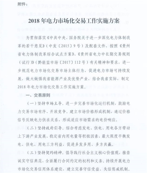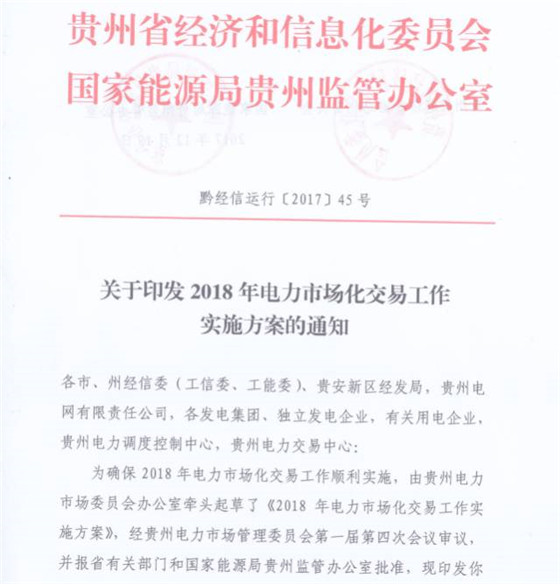貴州省經(jīng)信委、國家能源局貴州監(jiān)管辦日前聯(lián)合發(fā)布了《關(guān)于印發(fā)2018年度電力市場化交易工作實施方案》。