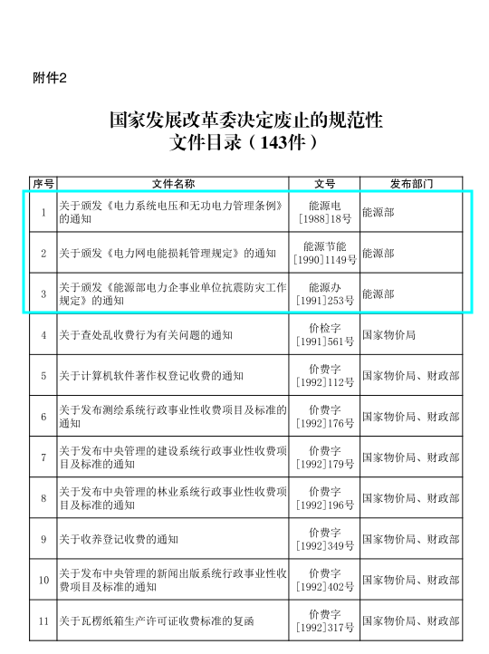 國家發(fā)改委關(guān)于廢止有關(guān)規(guī)章和規(guī)范性文件的決定發(fā)布:涉及電力行業(yè)13個(gè)