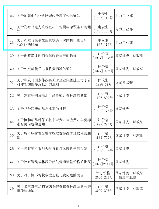為貫徹落實(shí)黨中央、國務(wù)院關(guān)于“簡政放權(quán)、放管結(jié)合、優(yōu)化服務(wù)”改革和生態(tài)文明建設(shè)、環(huán)境保護(hù)等要求,經(jīng)商國務(wù)院相關(guān)部門,現(xiàn)決定廢止《關(guān)于印發(fā)〈關(guān)于改進(jìn)工程建設(shè)概預(yù)算定額管理工作的若干規(guī)定〉等三個(gè)文件的通知》等9件規(guī)章(見附件1)和《關(guān)于頒發(fā)〈電力網(wǎng)電能損耗管理規(guī)定〉的通知》等143件規(guī)范性文件(見附件2)。