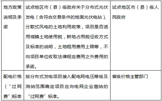 5.試點(diǎn)地區(qū)市(縣)級(jí)人民政府關(guān)于分布式光伏發(fā)電、分散式風(fēng)電土地利用、稅收適用政策的說(shuō)明或承諾;