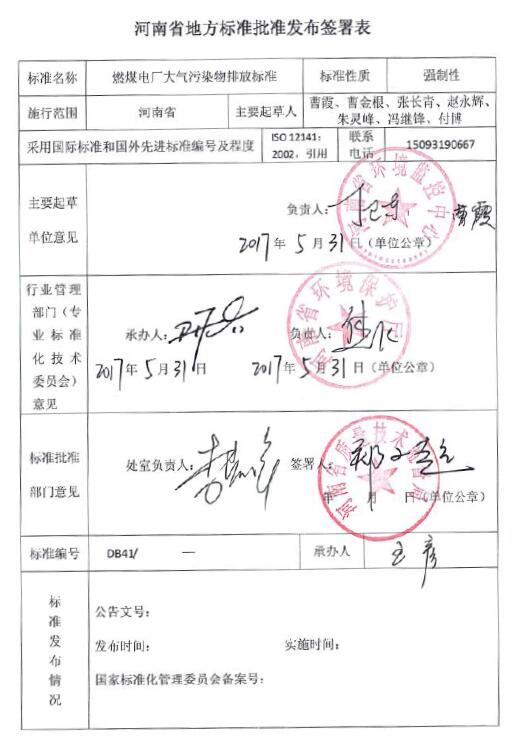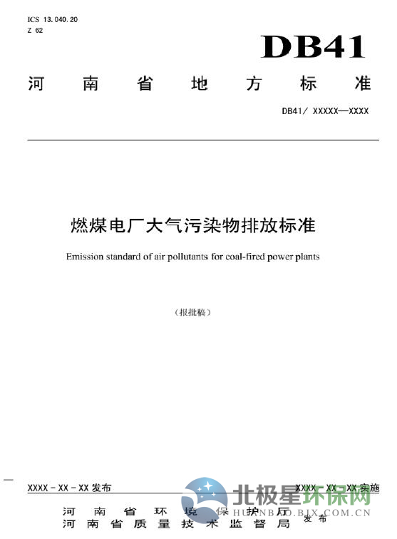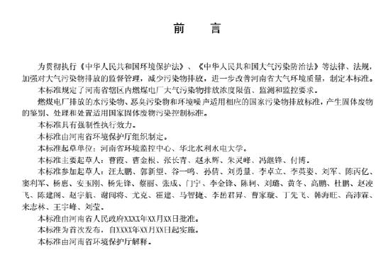 河南:《燃煤電廠大氣污染物排放標(biāo)準(zhǔn)》(報(bào)批稿)