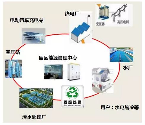 能源管理中心:結(jié)合各種類型園區(qū)的產(chǎn)業(yè)特點、能源資源情況、用能需求及園區(qū)能源運營方案,綜合利用多種類型能源(電、蒸汽、水、空氣)系統(tǒng)等,利用智能微網(wǎng)技術(shù),打造園區(qū)型能源互聯(lián)網(wǎng)。