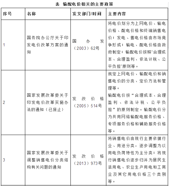 輸配電價(jià)主要政策分析