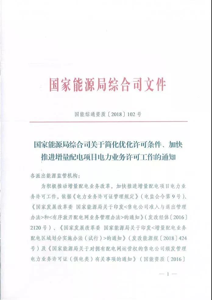 近日獲悉,國家能源局下發(fā)《關于簡化優(yōu)化許可條件、加快推進增量配電項目電力業(yè)務許可工作的通知》,從以下四方面簡化優(yōu)化增量配電項目電力