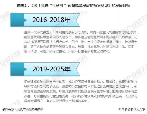 為滿足我國工業(yè)升級需求、能源安全及使用效率的提升、改善我國大氣環(huán)境減少污染,2016年2月,發(fā)改委聯(lián)合國家能源局以及工信部共同發(fā)布《關(guān)于推進“互聯(lián)網(wǎng)+”智慧能源發(fā)展的指導(dǎo)意見》,該指導(dǎo)意見將我國的能源互聯(lián)網(wǎng)構(gòu)建分為近中期兩個階段:2016-2018年為第一階段,該階段以推進能源互聯(lián)網(wǎng)試點示范工作為重點,在能源互聯(lián)網(wǎng)技術(shù)上力爭達到國際先進水平,初步建成能源互聯(lián)網(wǎng)技術(shù)標準體系。
