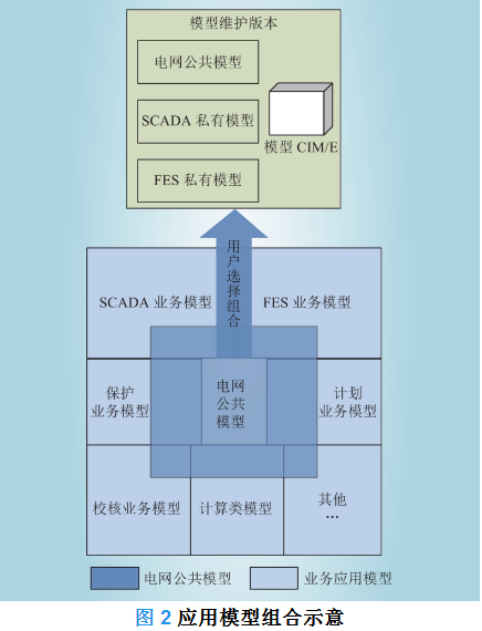 以電網(wǎng)模型(電網(wǎng)設(shè)備及拓?fù)浣Y(jié)構(gòu))為管理的核心模型,各業(yè)務(wù)私有模型為補(bǔ)充,形成應(yīng)用維度模型集;用戶可以根據(jù)維護(hù)、應(yīng)用分析反演的需求靈活組合需要的模型,如圖2所示。