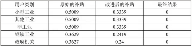 表5 補(bǔ)貼方三年內(nèi)交叉補(bǔ)貼消除軌跡 單位:比索/千瓦時(shí)